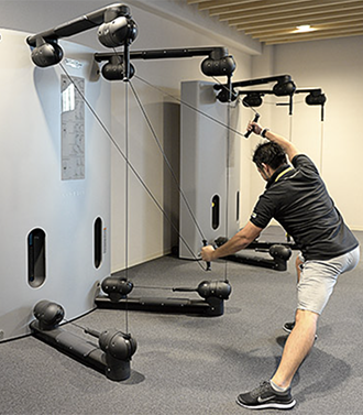 KINESIS(キネシス)は、「生活の質向上には、身体活動をより身近なものに」という考えから生まれた、今までにない、全く新しいマシン。1台で筋力、バランス、柔軟性を総合的に高めていくことができ、200種類以上のエクササイズが可能。胸部、背部、腹部…特定の筋群はもちろん、ムーブメントを組み合わせ、常に体幹を意識しながらトレーニングするのがポイントです。