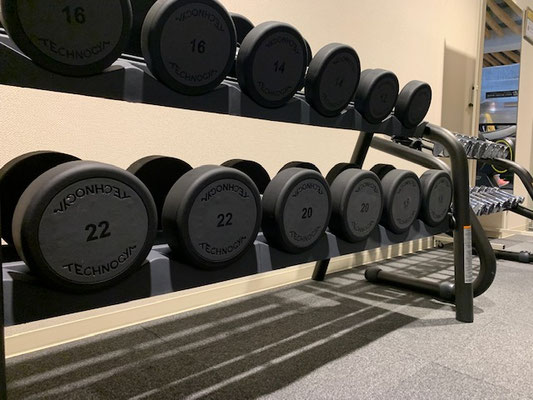 ダンベルは1kg~22kgまで取り揃えております。
