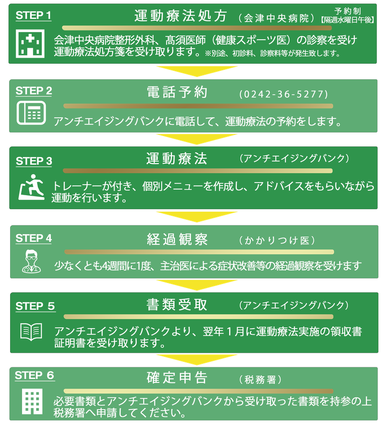 ①運動療法を行うことが適当であると医師が判断した疾病をお持ちの方(高血圧、高脂血症、糖尿病、虚血性心疾患等の生活習慣病、腰痛や関節痛等の整形疾患、その他、医師が運動療法可能と判断した疾患)